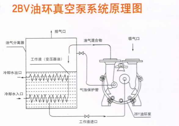 如圖所示:被抽氣體由2BV油環(huán)泵抽除并被排入油氣分離器,在油氣分離器內(nèi)油、氣得到分離,氣體從排氣口排